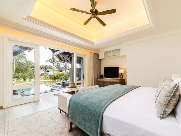 Le 64 ville indipendenti, recentemente rinnovate, offrono un'atmosfera ariosa con un tocco di lusso discreto, dove l'eredità coloniale e gli elementi moderni si fondono armoniosamente. Gli ospiti possono scegliere tra una vista mare mozzafiato o una vista giardino idilliaca. Ogni villa dispone di una piscina privata, una doccia esterna, un sistema home cinema Bose, oltre a un'area pranzo semi-aperta che si apre verso la veranda e la terrazza. Con sei diversi tipi di ville, le cui dimensioni variano da 163 mq a 220 mq, e una straordinaria villa presidenziale di generosi 345 mq, il resort di lusso garantisce assoluta privacy. Inoltre, è possibile collegare alcune delle ville tra loro per soddisfare esigenze individuali, per esempio, per le famiglie.
