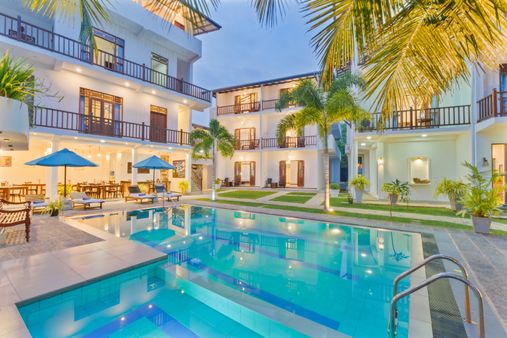 18 camere deluxe, di cui tre accessibili e quindi adatte a persone con disabilità, con vista sull'Oceano Indiano, il giardino tropicale con piante da tempio e palme da cocco, nonché l'area piscina. Le camere sono arredate in stile tradizionale e dotate di alta qualità. Grandi vetrate e balconi privati garantiscono ambienti luminosi e una sensazione di spazio aperto. Elementi antichi come porte, finestre e mobili sono stati combinati con eleganza con mobili di design fatti a mano, realizzati appositamente da artigiani locali. Tutti i pavimenti sono in terrazzo lavorato con cura, che rimane piacevolmente fresco - ideale per il clima tropicale.