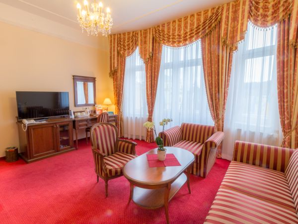 Vi aspettano 237 camere moderne e confortevoli. Superior (Neapol) con doccia/WC, asciugacapelli, accappatoio, ciabattine, telefono, Wi-Fi, TV satellitare, minibar, cassaforte. Superior Plus (Imperial) con balcone parziale, vista parziale sulla Piazza Goethe. Premium (Hvězda) con aria condizionata sul lato sud, ideale per allergici. Suite su richiesta. Anche camere adatte a persone con disabilità. Ascensore.