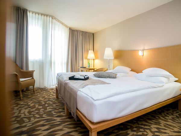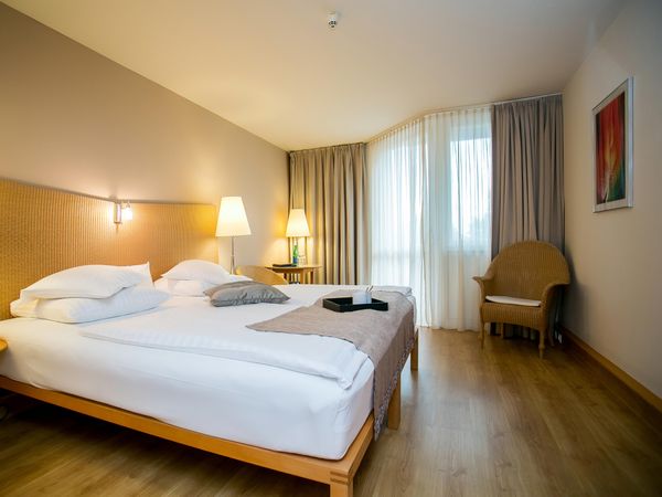 Scoprite il meraviglioso mondo della Lotus Therme, con un'area benessere di circa 2600 mq, aperta dalle ore 7-22. La piscina interna ed esterna (circa 31°C) sono collegate da un canale per nuotare. Vasca con acqua medicinale (circa 36-38°C), vasca per meditazione e vasca relax con finestra panoramica (entrambe circa 33-34°C). Idromassaggio, sedili a bolle, getti d'acqua e docce cervicali. Area sauna (dai 12 anni in su) con sauna finlandese, sauna da giardino, laconium, bagno turco, aromaterapia con luce, percorso Kneipp, docce emozionali e cabine a infrarossi. A pagamento: grotta di sale del Mar Morto con vari effetti luminosi e musica - a 22°C e 45% di umidità, i minerali e gli oligoelementi vengono assorbiti attraverso la pelle e le vie respiratorie. Nel freddo glaciale della criosauna, in 2-3 minuti il metabolismo è stimolato e il sistema immunitario è attivato. L'obiettivo della terapia del freddo estremo è supportare la salute, il metabolismo, una dieta e la rigenerazione. Un altro obiettivo della crioterapia è la riduzione di dolore, infiammazioni, gonfiori, contusioni, allergie e cellulite.